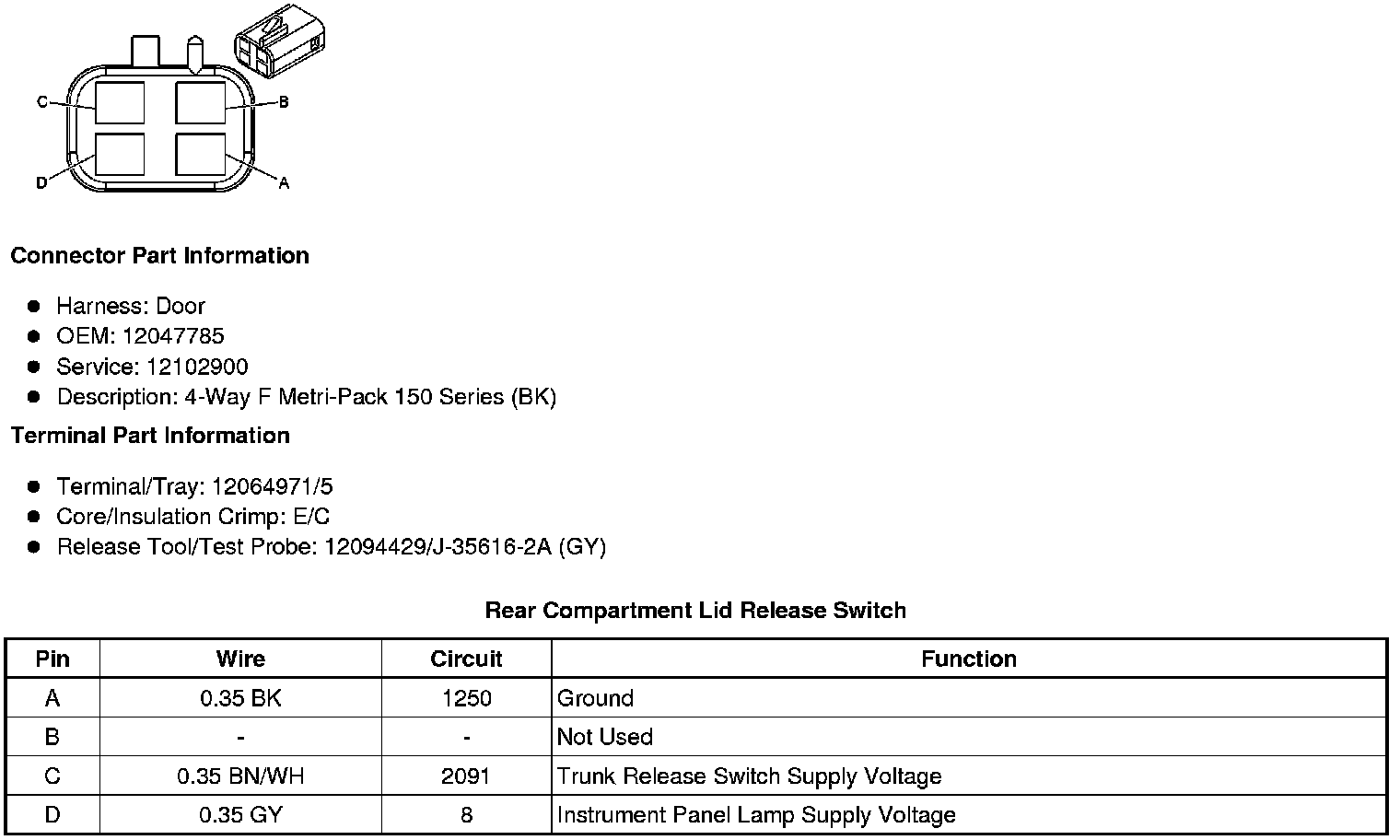 Rear Compartment Lid Release Switch
