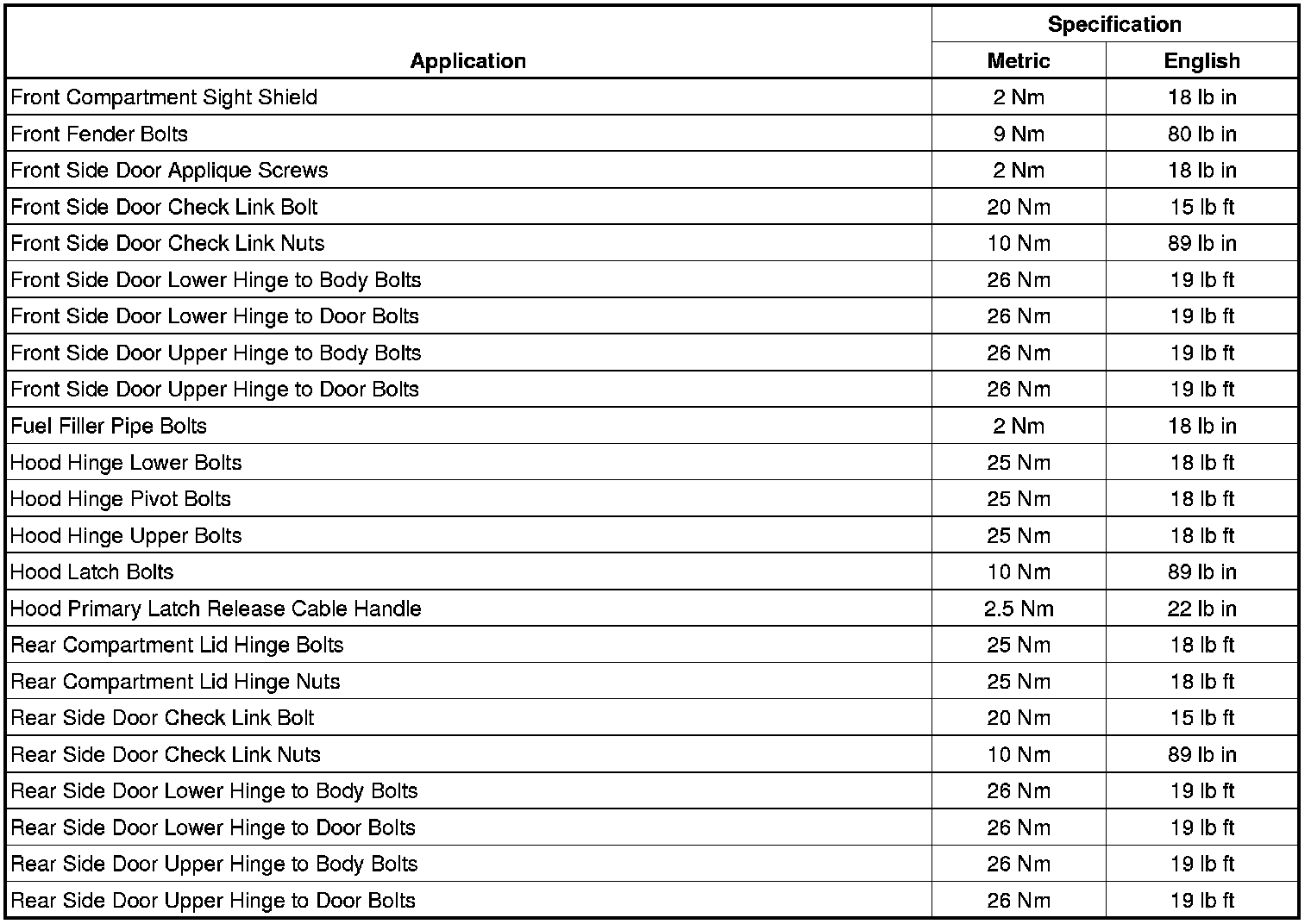 Fastener Tightening Specifications