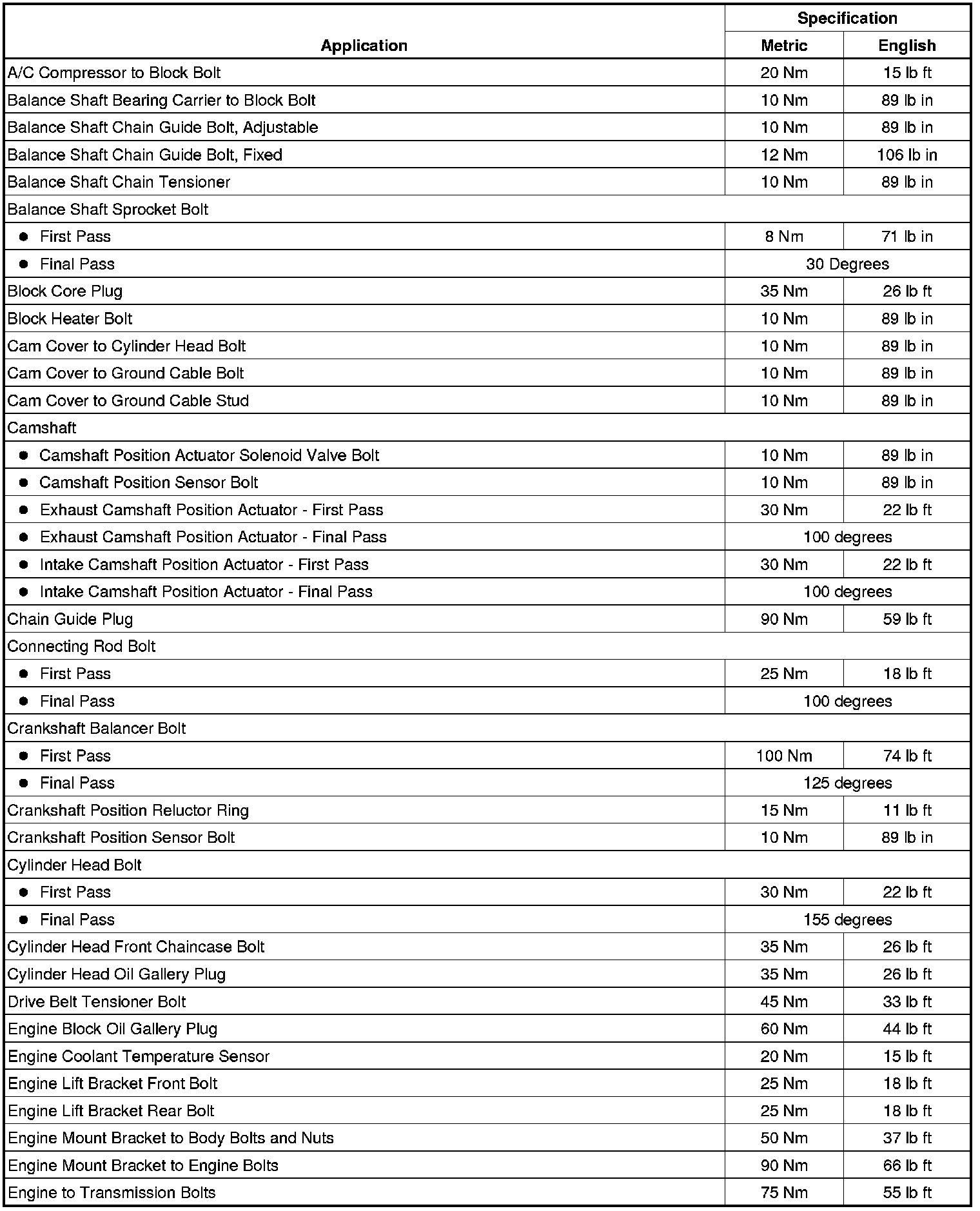 Fastener Tightening Specifications