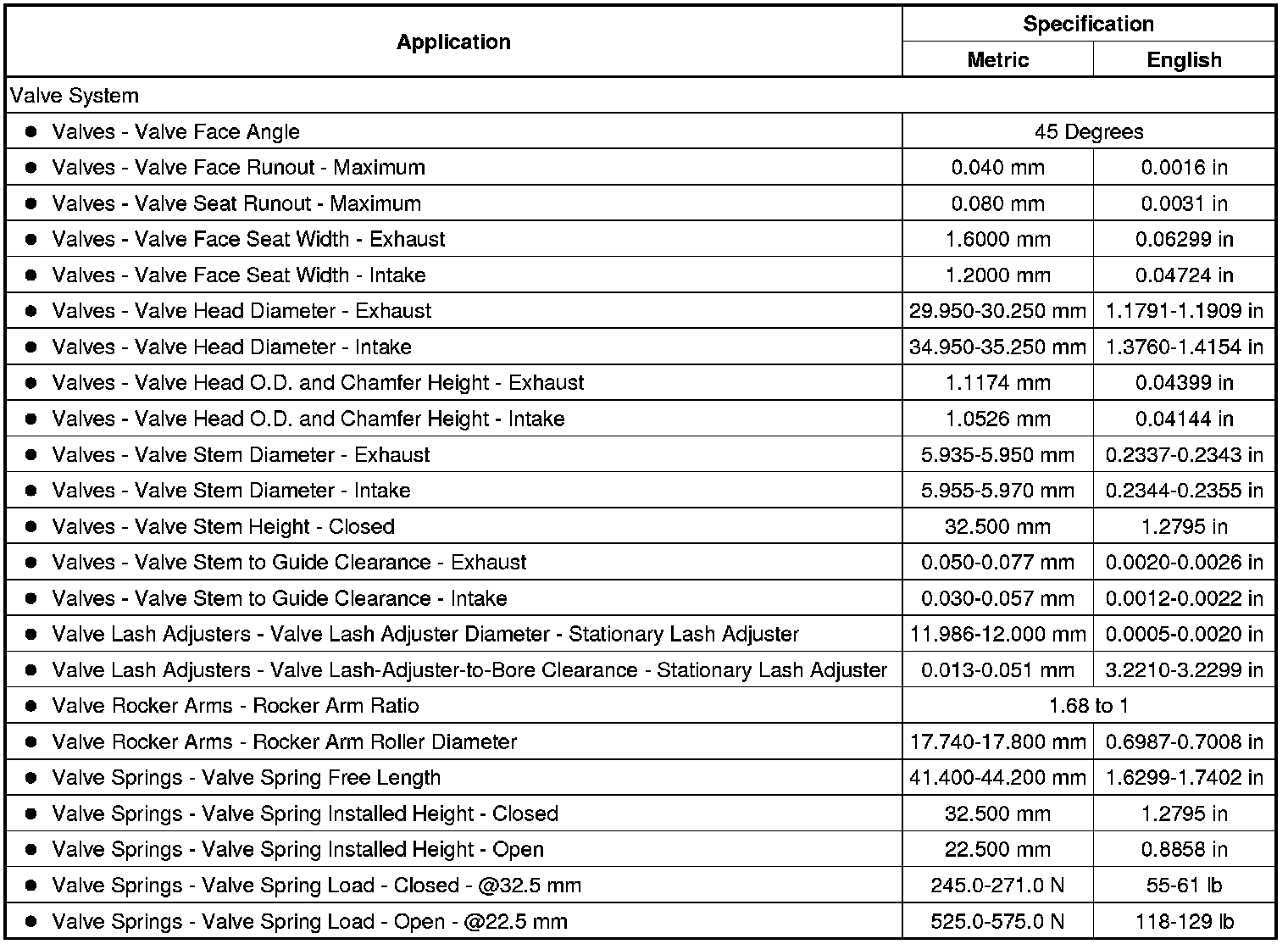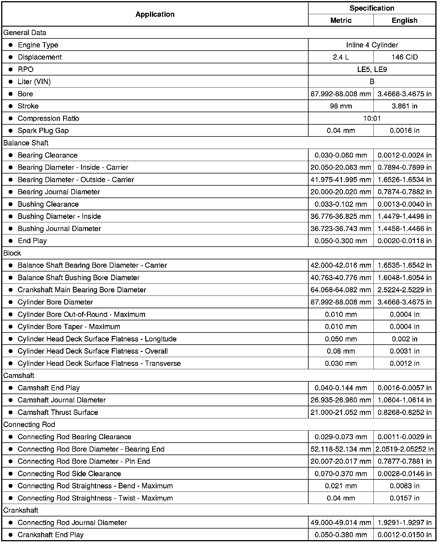 Engine Mechanical Specifications (LE5, LE9)