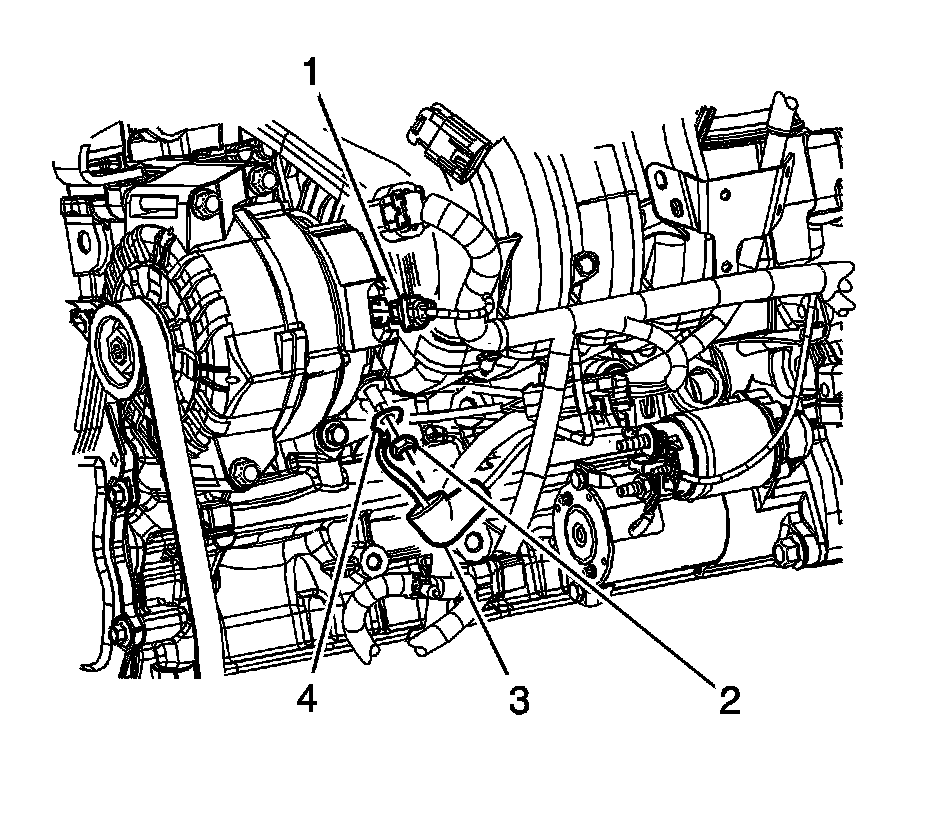 6. Remove the engine harness terminal (4) from the generator stud.