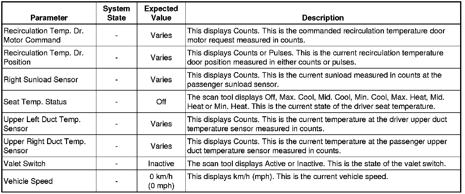 Heating, Ventilation and Air Conditioning Control Module Scan Tool Information