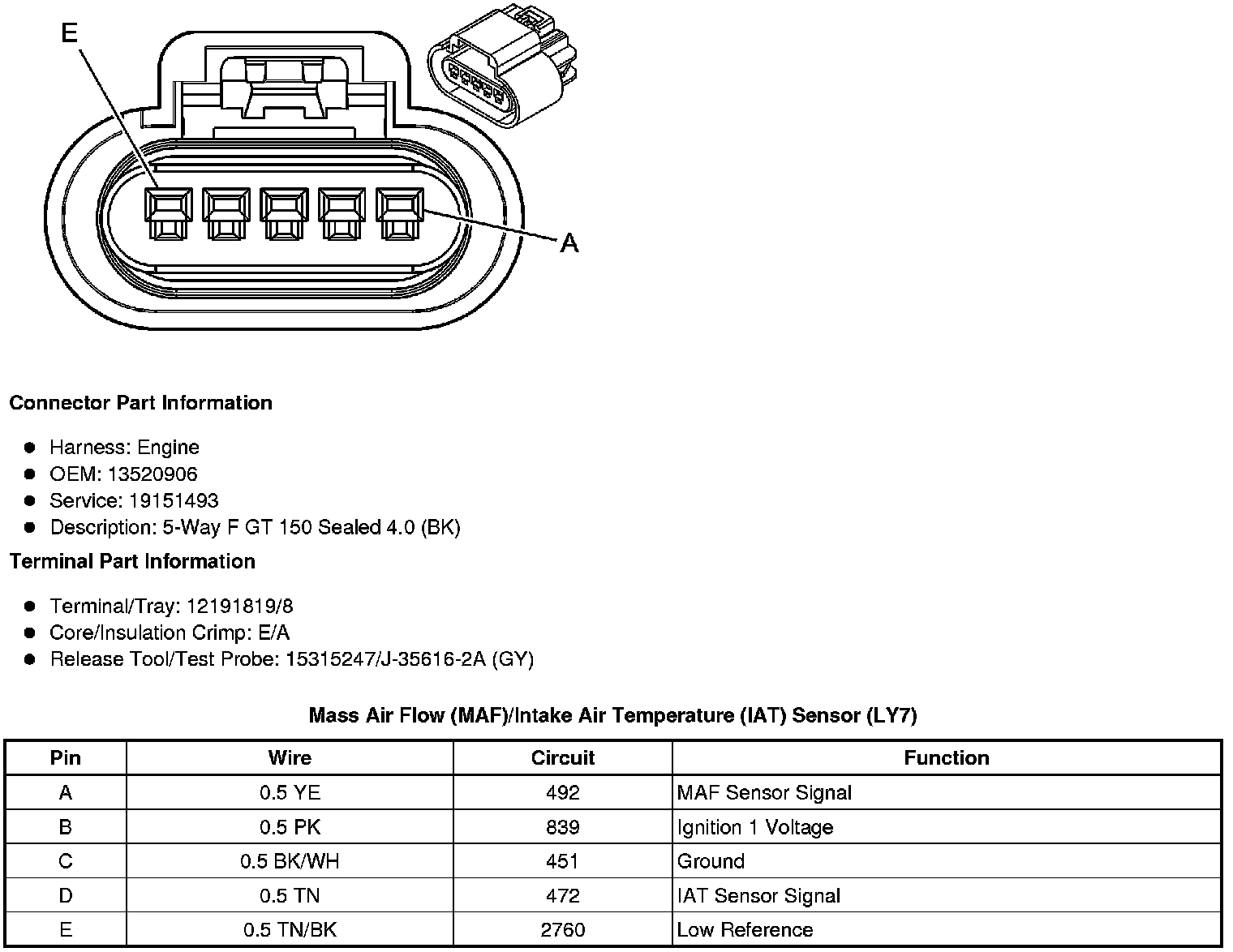 Mass Air Flow (MAF)/Intake Air Temperature (IAT) Sensor (LY7)