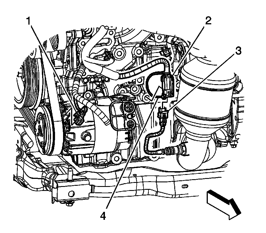 4. Install the CPA retainer (4) to the HO2S electrical connection.