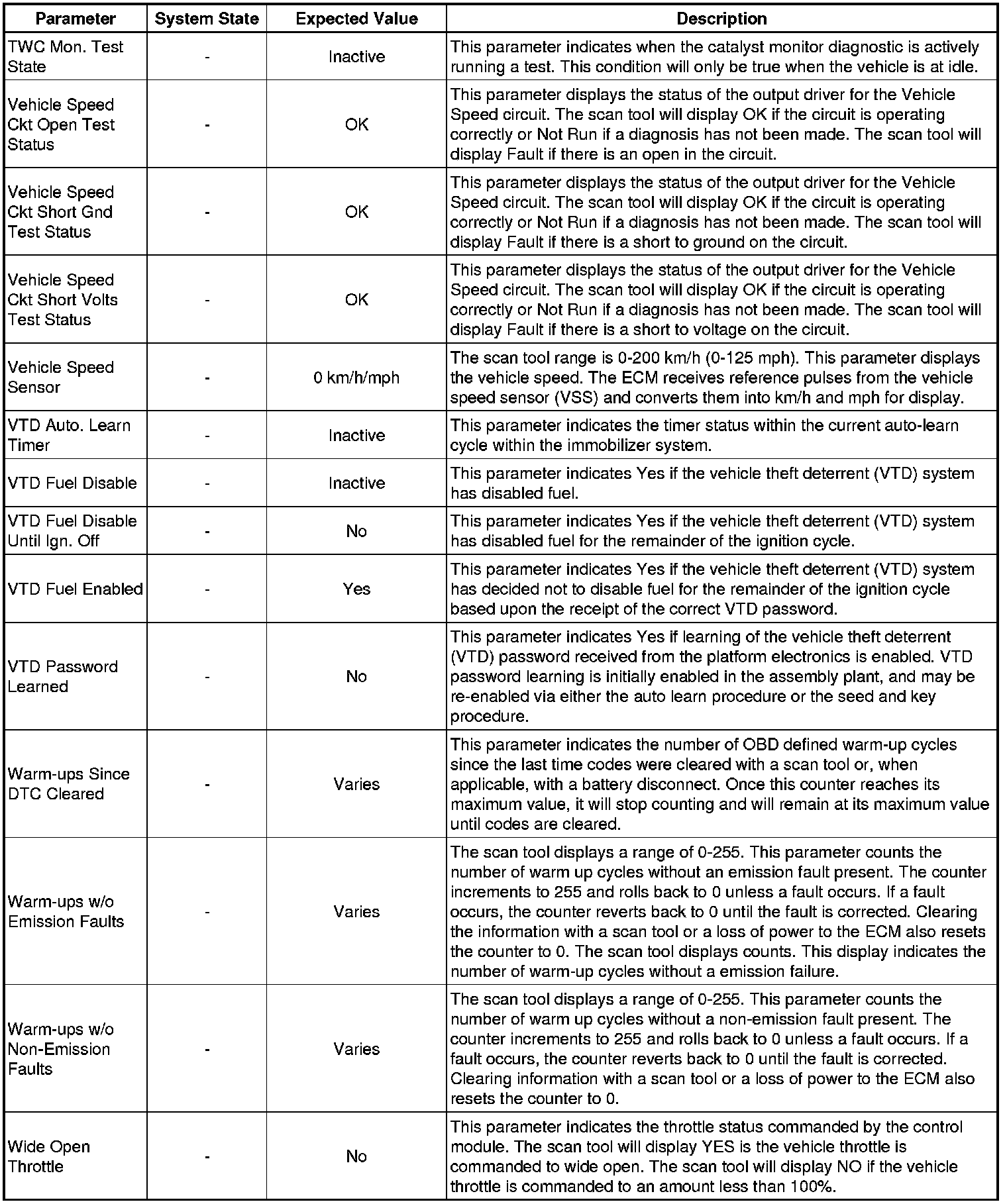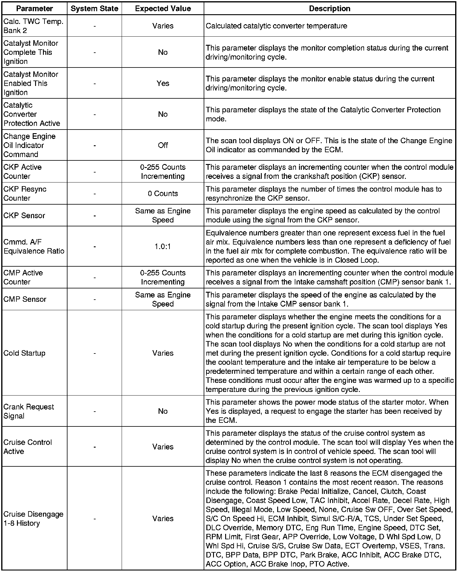 Only the parameters listed below are referenced in this service manual for use in diagnosis. If all values are within the typical range described below, refer to Symptoms - Engine Controls (Symptoms - Engine Controls) for diagnosis.