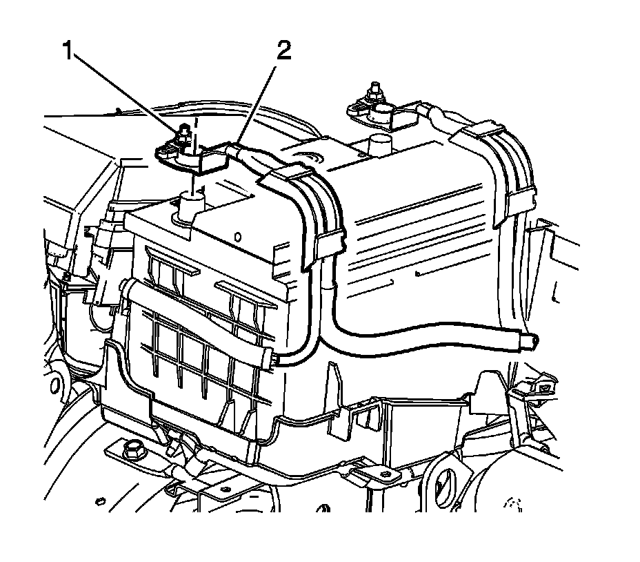 4. Remove the battery tie down bolt (1).