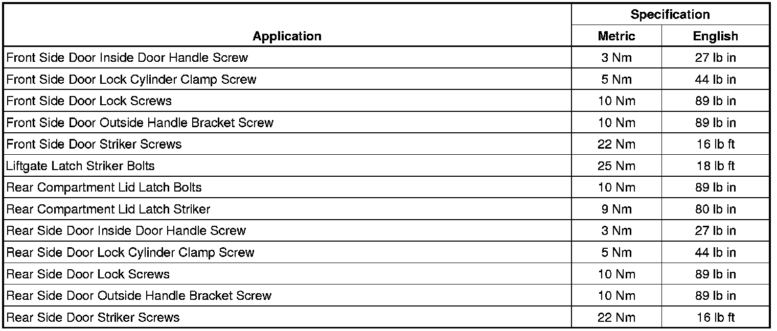 Fastener Tightening Specifications