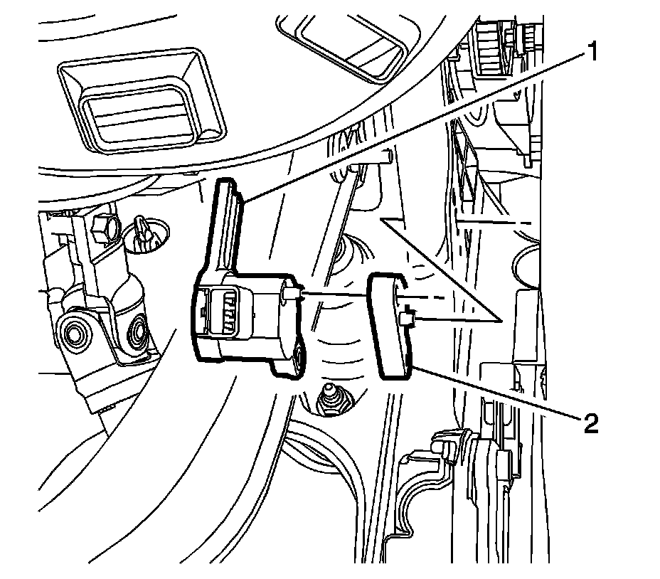 1. Align the locating pin on the brake pedal position sensor (1) to the hole on the spacer (2).