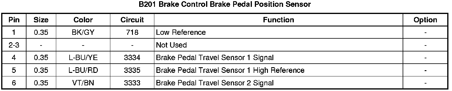 B201 Brake Control Brake Pedal Position Sensor