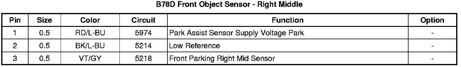 B78D Front Object Sensor - Right Middle