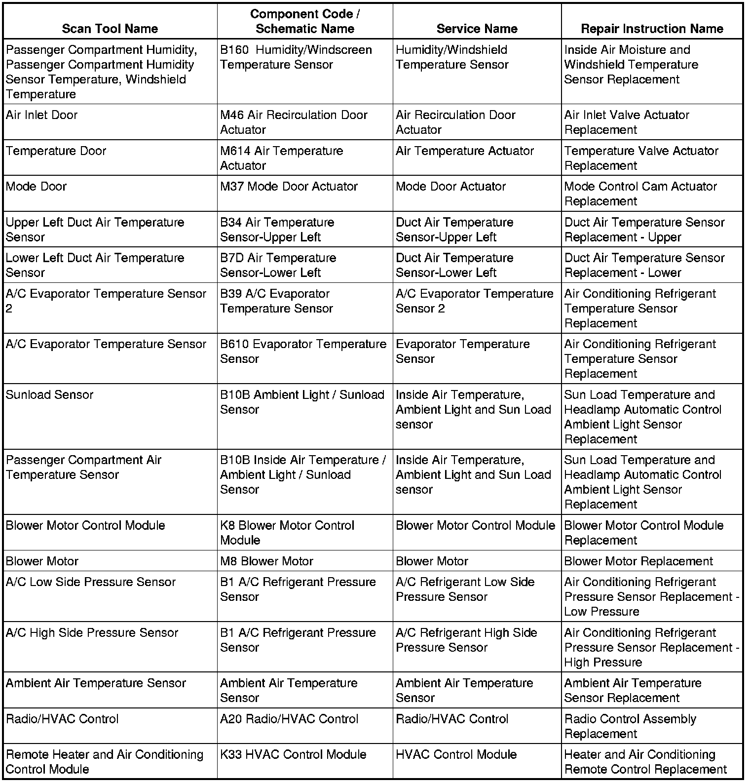 HVAC Component Replacement Reference