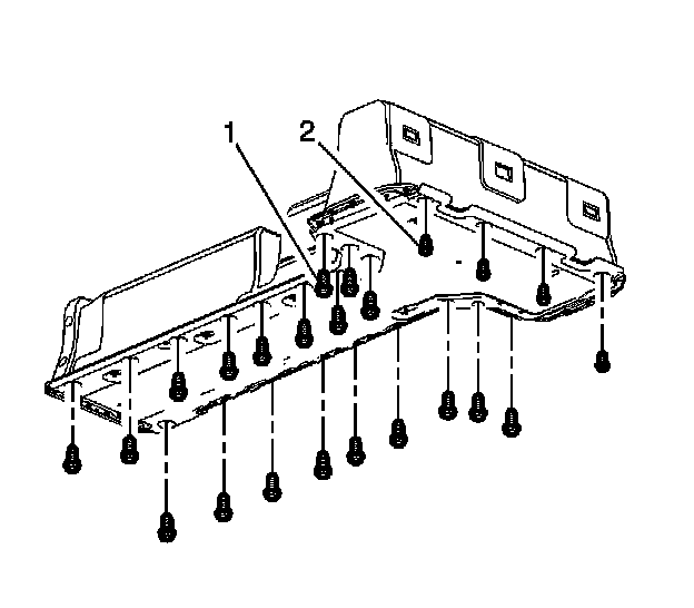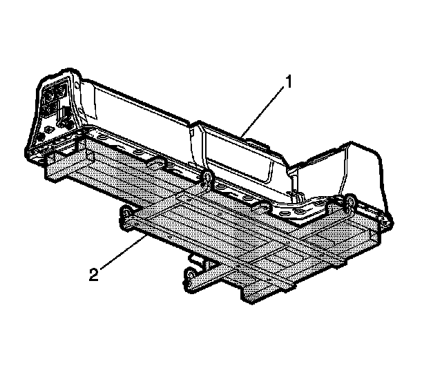 3. Tighten the battery tray fasteners (1) to 58 Nm (43 lb ft) and tighten the battery tray fasteners (2) to 22 Nm (16 lb ft).