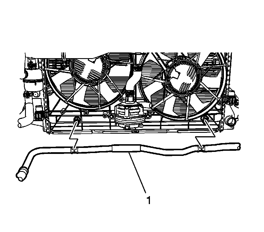 2. Connect the drive motor generator control module cooling outlet hose (1) to the cooling fan and shroud.