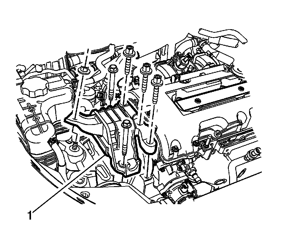 4. Remove the right engine mount bracket (1). Refer to Engine Mount Bracket Replacement - Right Side Engine Mount Bracket Replacement - Right Side