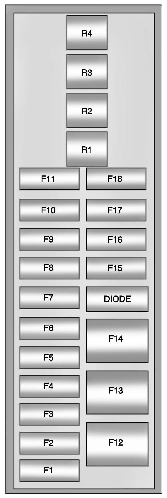 The vehicle may not be equipped with all of the fuses, relays, and features shown.
