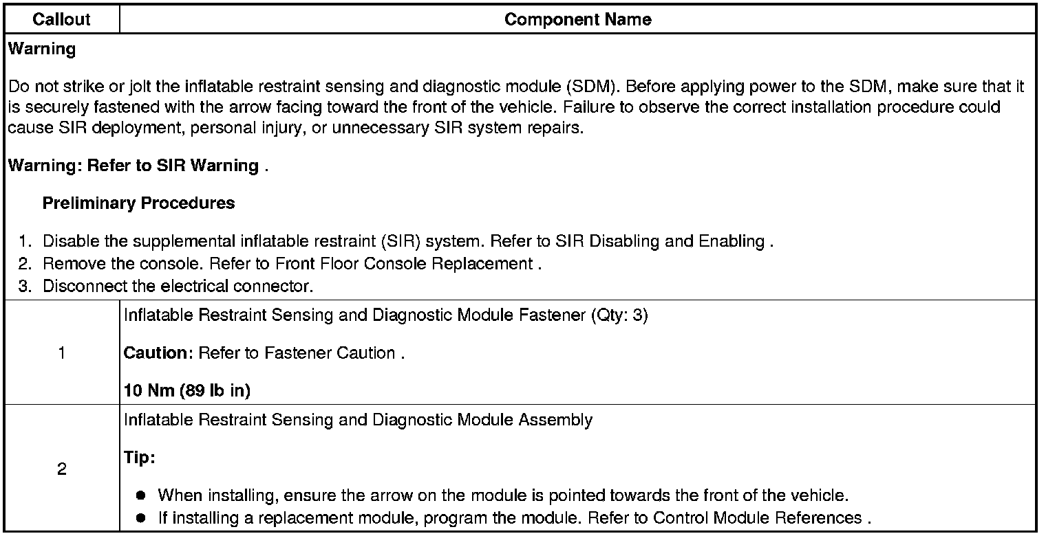 Inflatable Restraint Sensing and Diagnostic Module Replacement