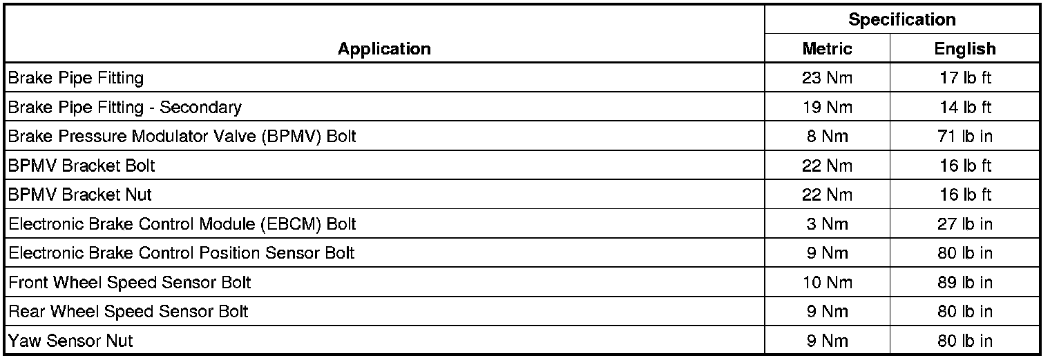 Fastener Tightening Specifications