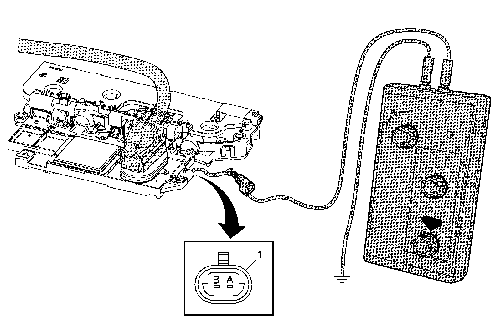 4. Ignition ON, test for 8.3-9.3 volts at terminal A.