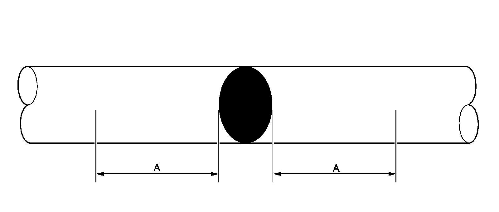 8. The Silicone Rescue Tape must wrap the cable to provide 1.25 in (A) of coverage from edge of damage on each side of the abrasion or damaged area.