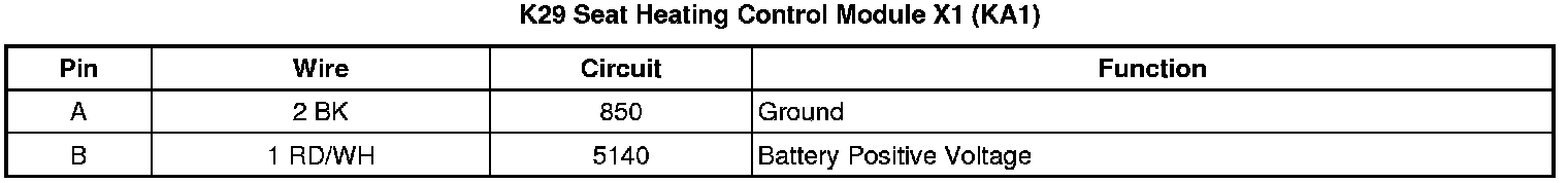 Seat Heating Control Module X1 (KA1)