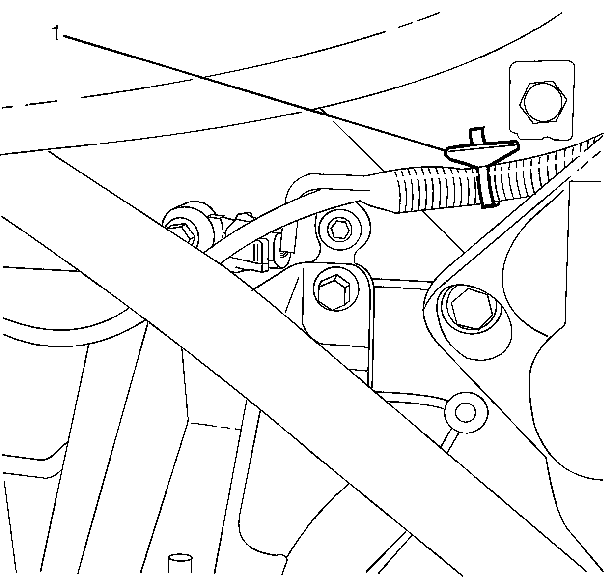 2. Disconnect the wiring harness retaining clip♦(1).