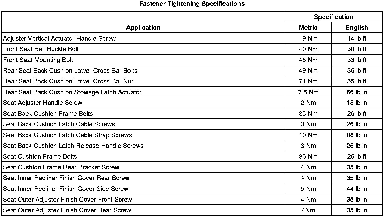 Fastener Tightening Specifications