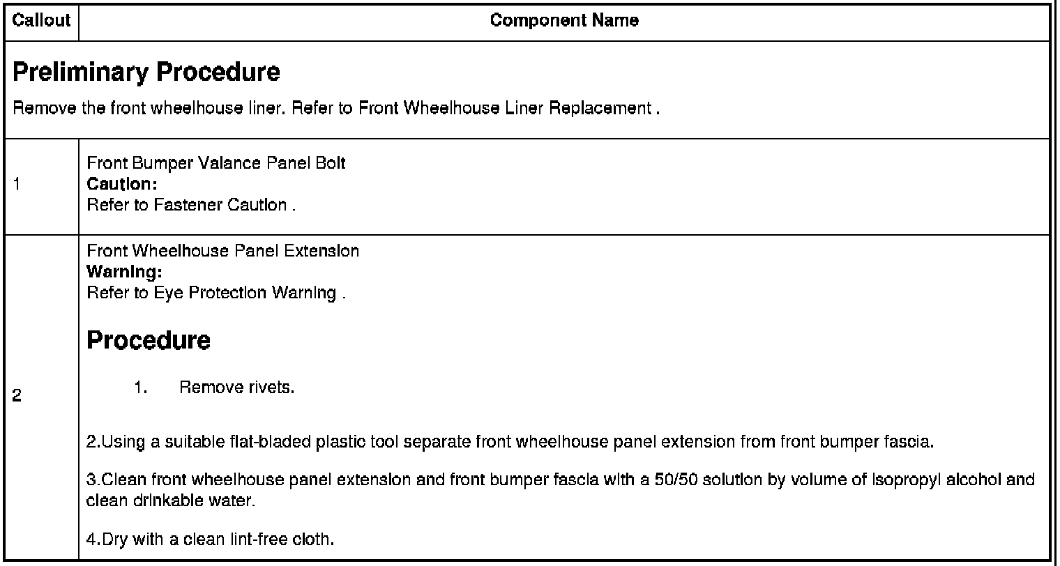 3.Clean front wheelhouse panel extension and front bumper fascia with a 50/50 solution by volume of isopropyl alcohol and clean drinkable water.