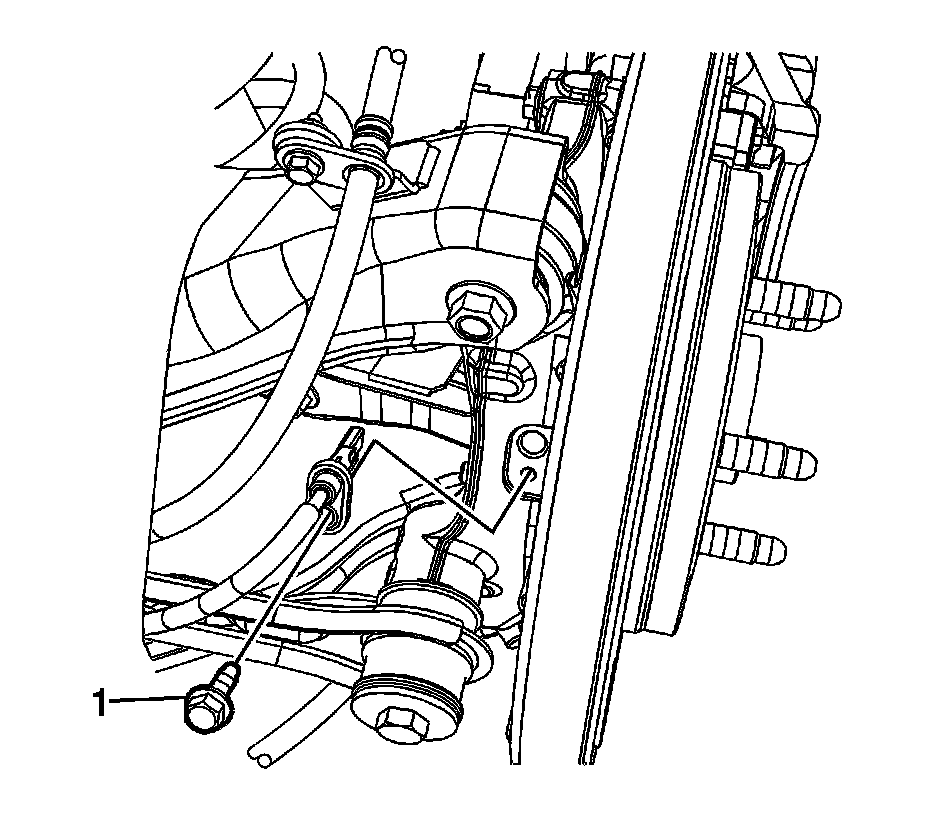 2. Install the wheel speed sensor bolt (1) and tighten to 9 Nm (80 lb in).