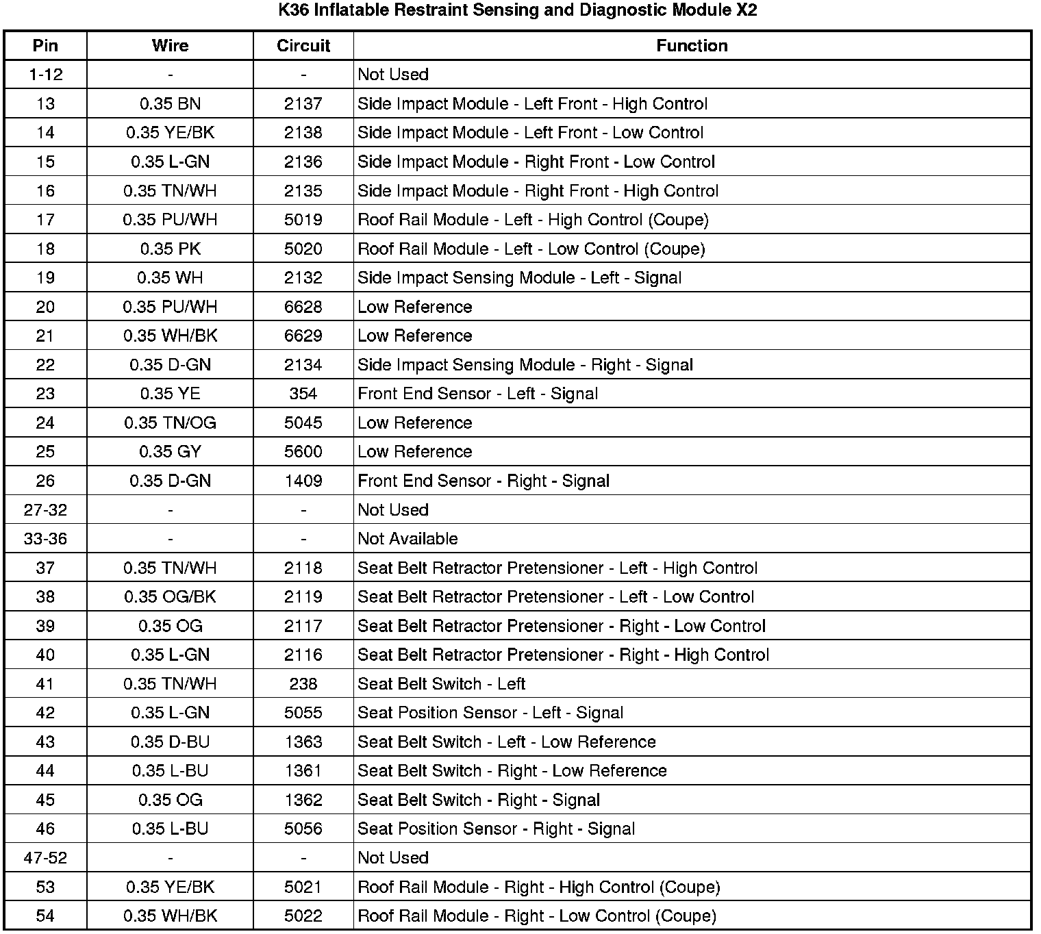 K36 Inflatable Restraint Sensing and Diagnostic Module X2