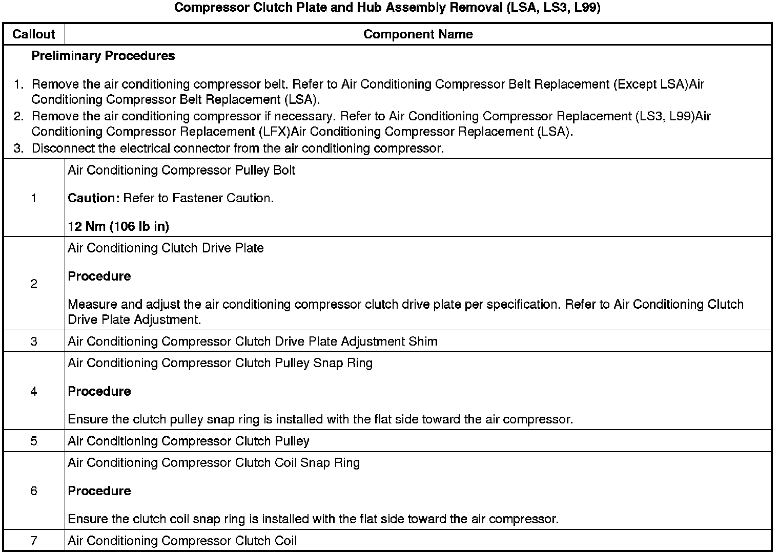 Compressor Clutch Plate and Hub Assembly Removal (LSA, LS3, L99)