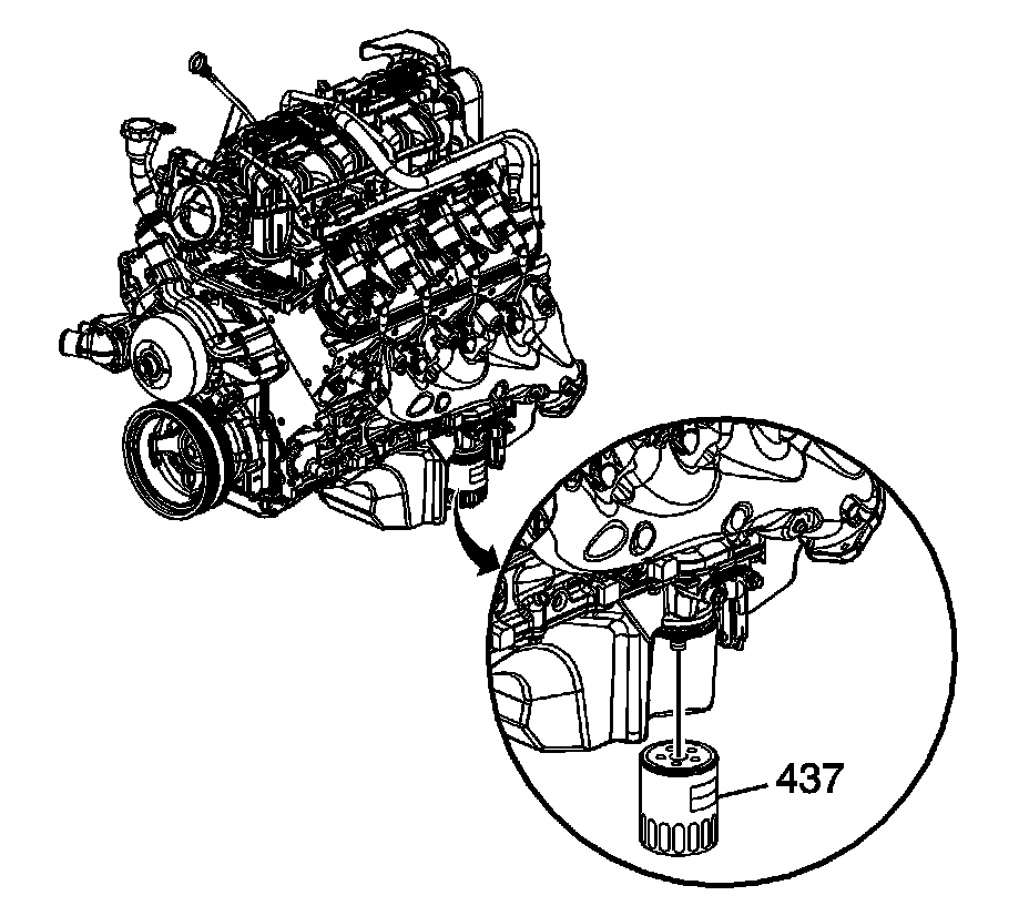 2. Install the NEW oil filter (437) and tighten to 30 Nm (22 lb ft).