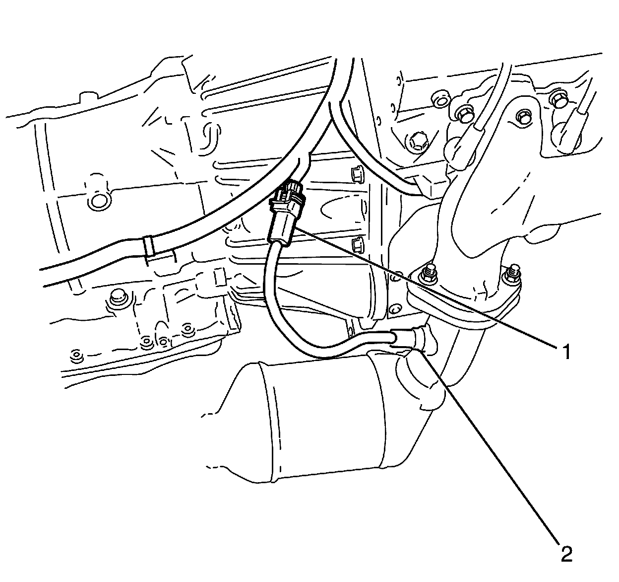 1. Install the HO2S (2) to the left catalytic converter and tighten to 42 Nm (31 lb ft).