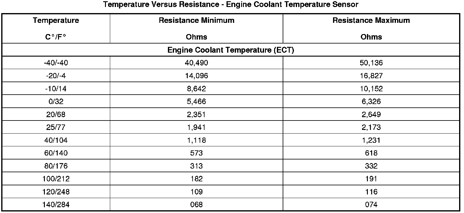 Temperature Versus Resistance - Engine Coolant Temperature Sensor