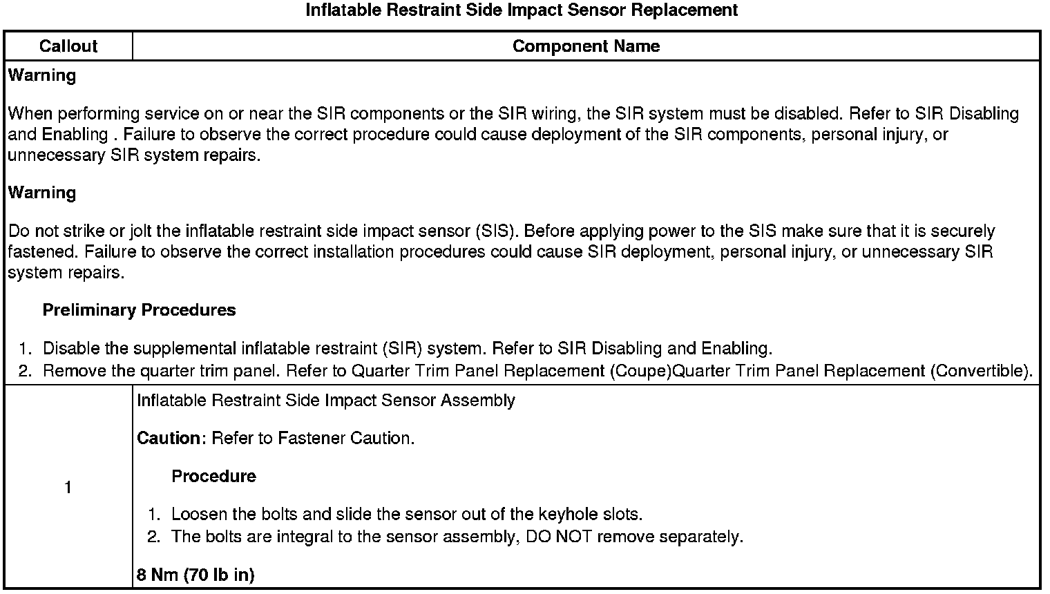 Inflatable Restraint Side Impact Sensor Replacement