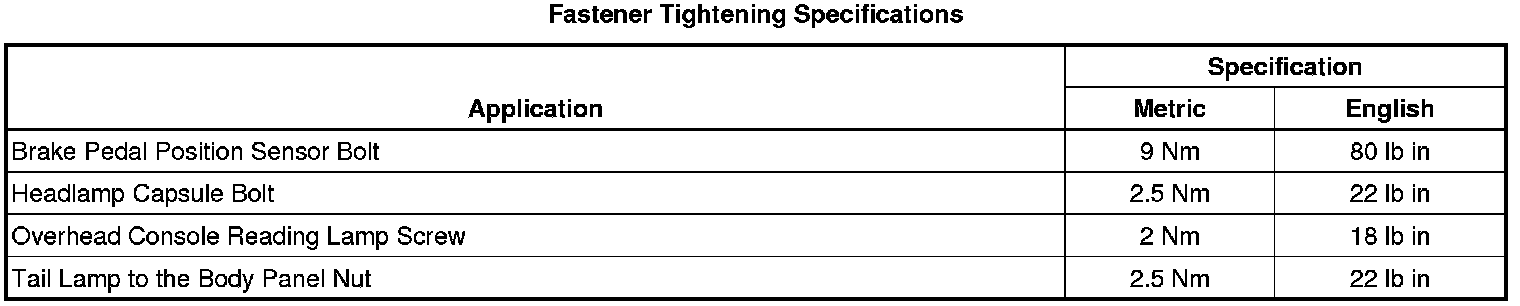 Fastener Tightening Specifications