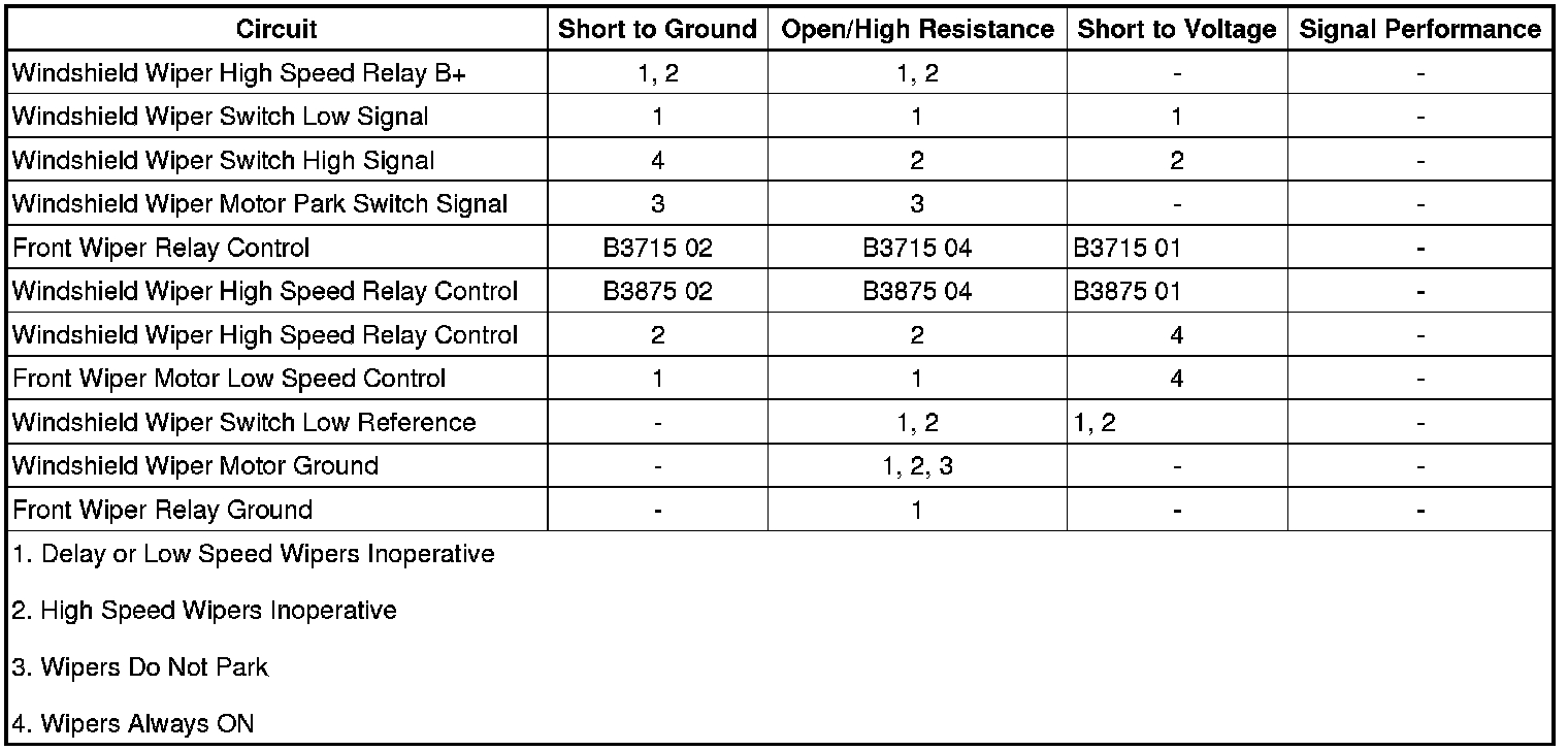 • If the wipers are not operating at high speed, refer to the Windshield Wiper Motor Circuit Test.