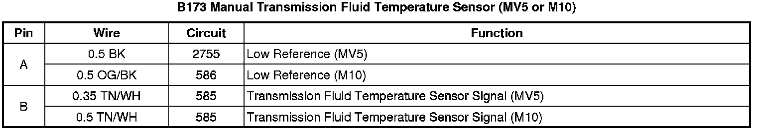 B173 Manual Transmission Fluid Temperature Sensor (MV5 or M10)