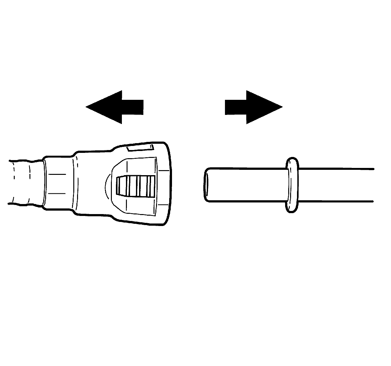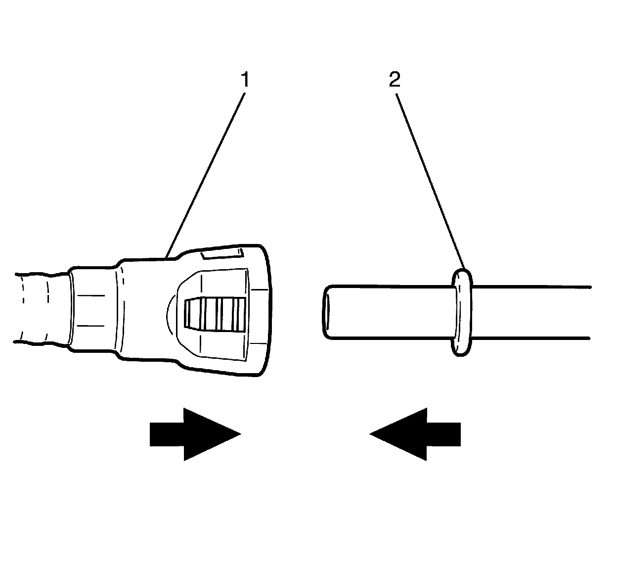 2. Push both sides (1 and 2) of the quick-connect fitting together to cause the retaining tabs/fingers to snap into place.