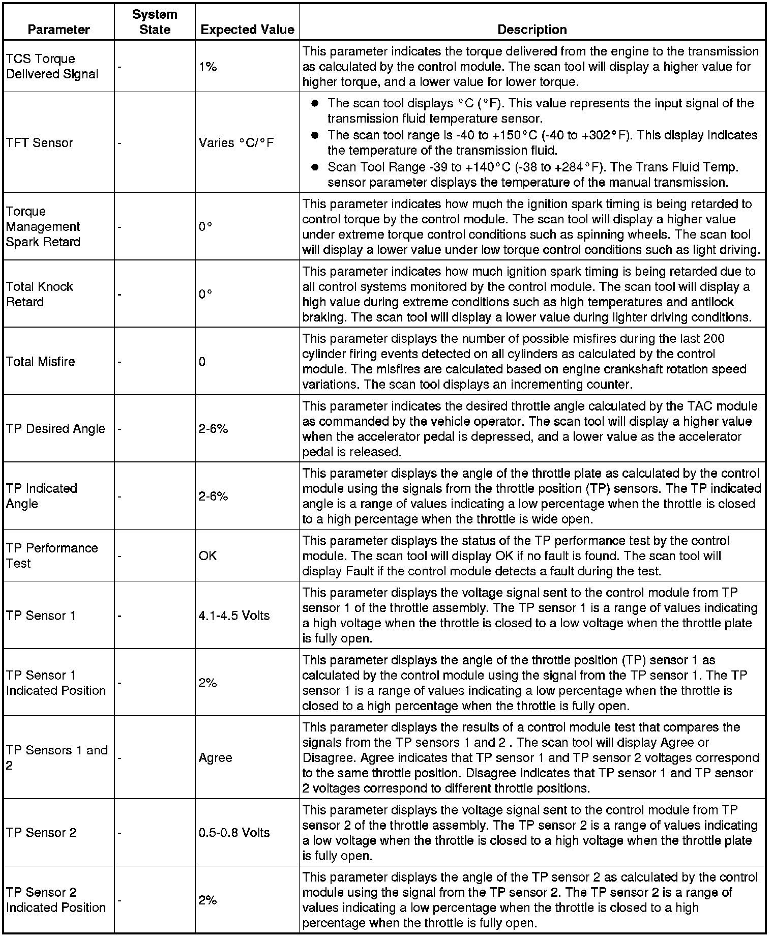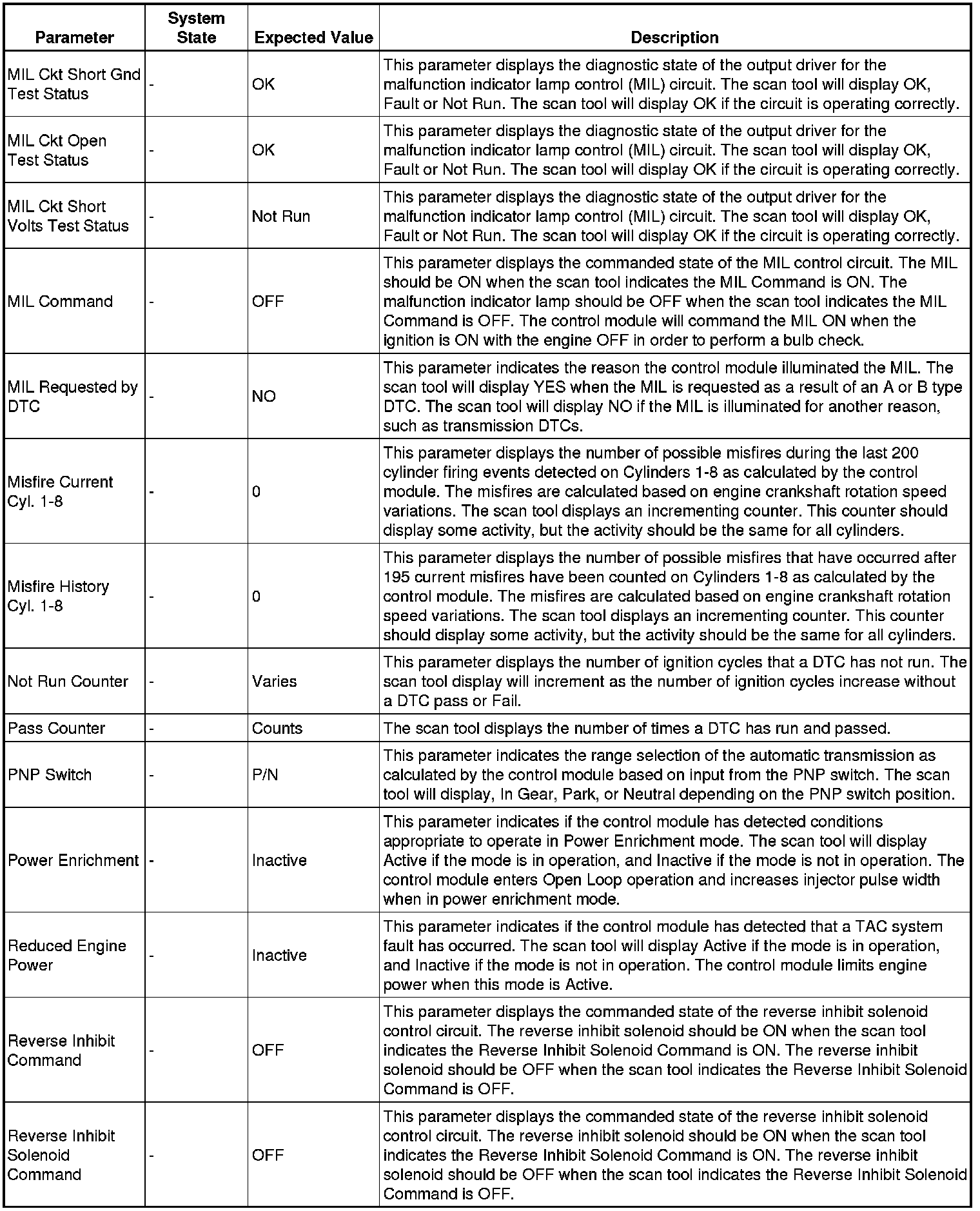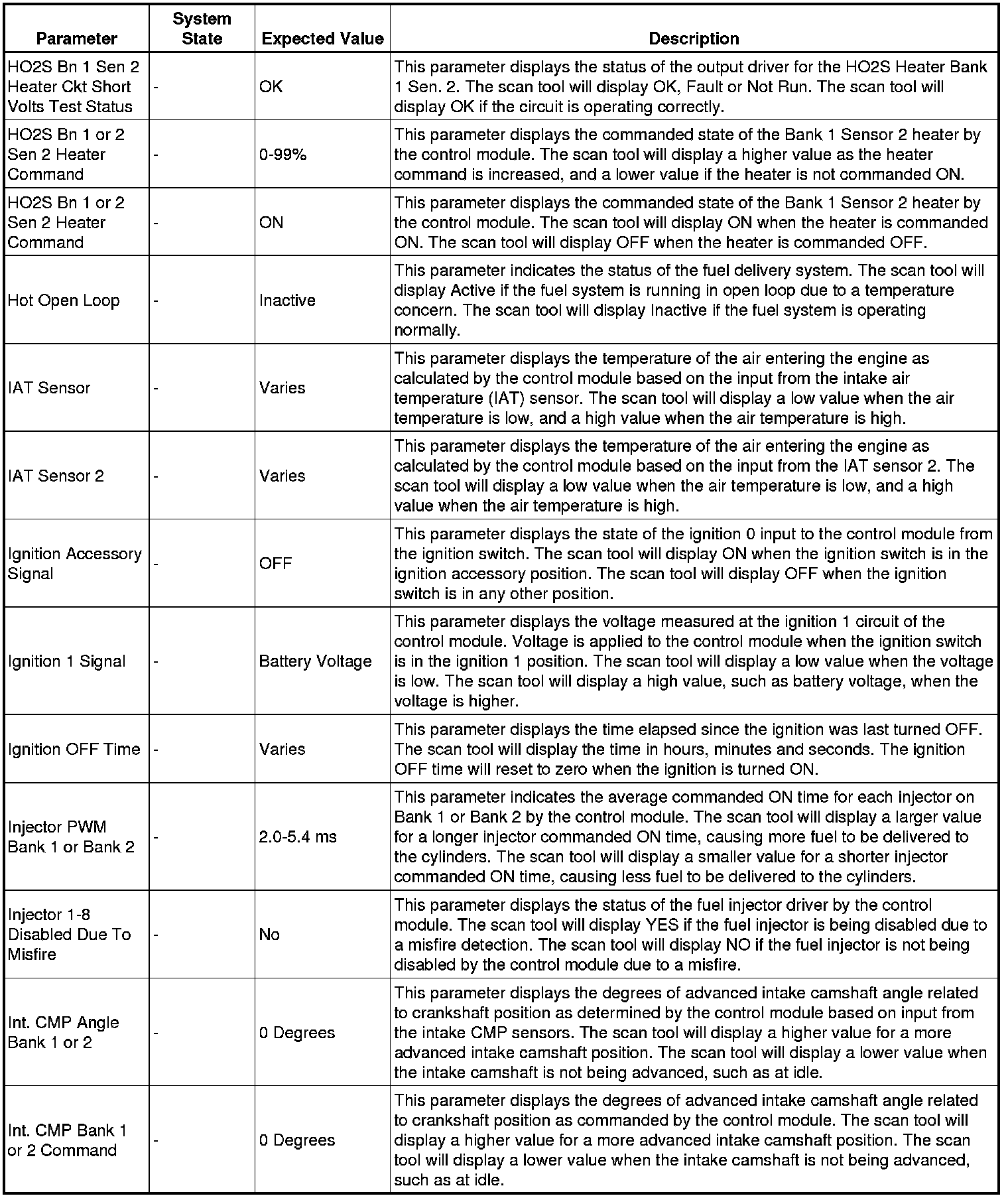 The Engine Control Module Scan Tool Data List contains all engine-related parameters that are available on the scan tool. The list is arranged in alphabetical order. A given parameter may appear in any one of the data lists, and in some cases may appear more than once, or in more than one data list in order to group certain related parameters together.