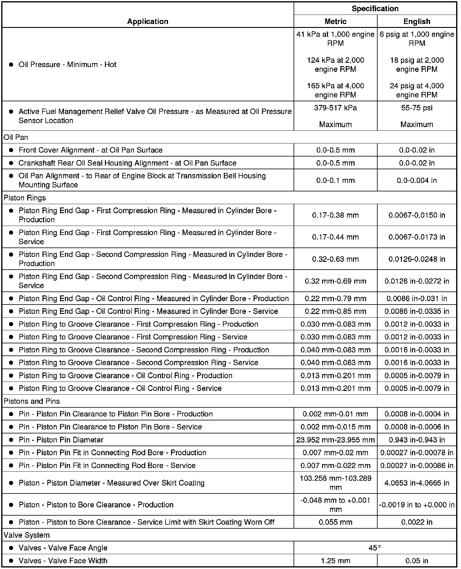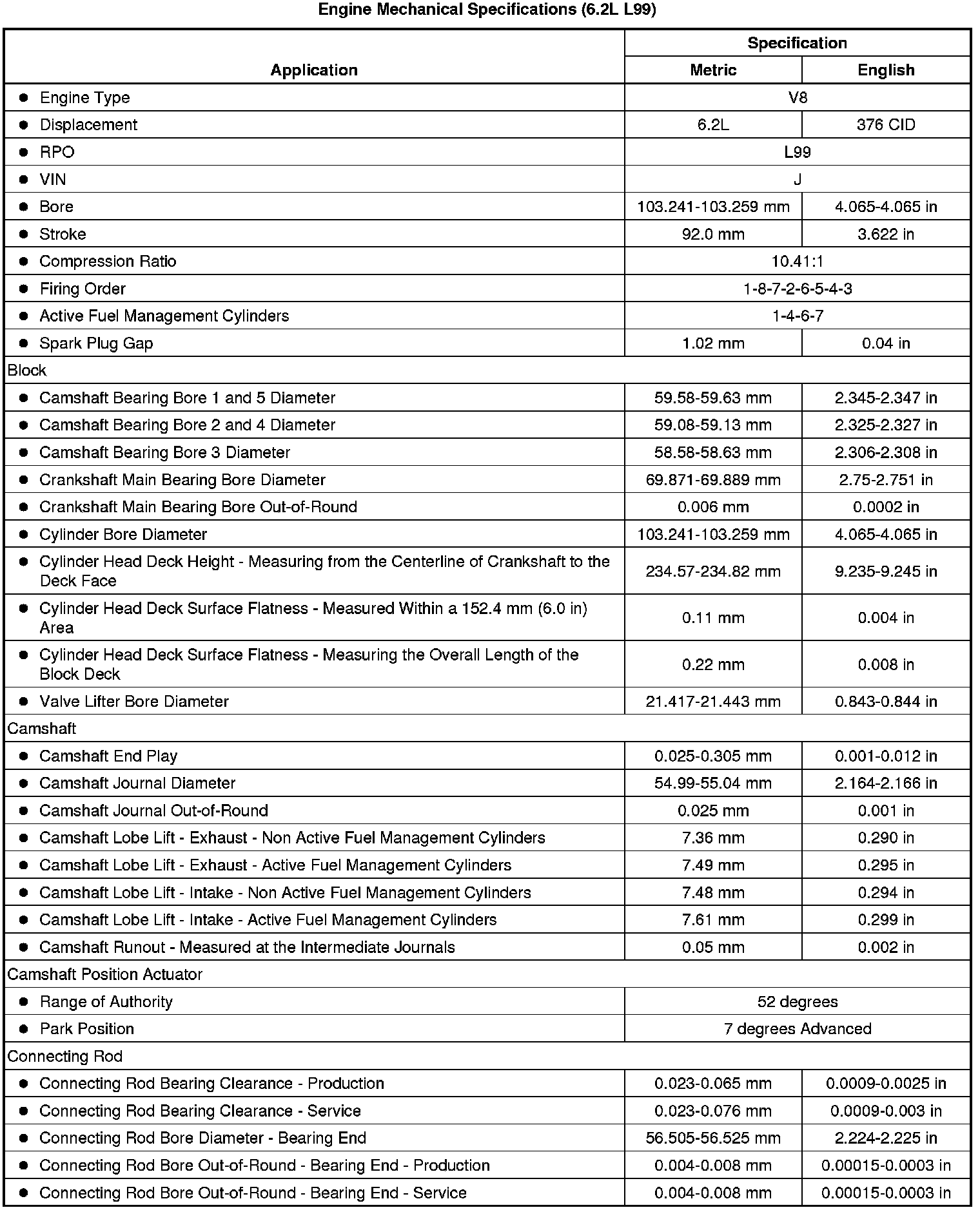 Engine Mechanical Specifications (6.2L L99)