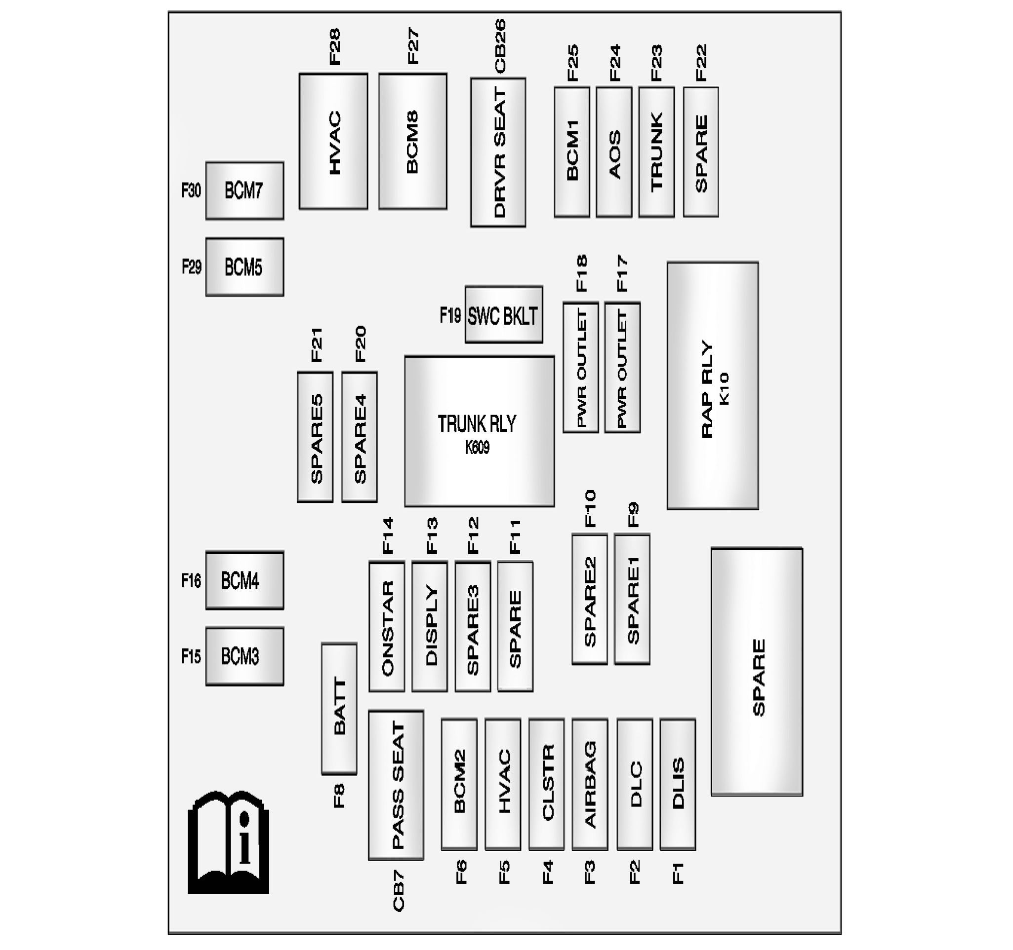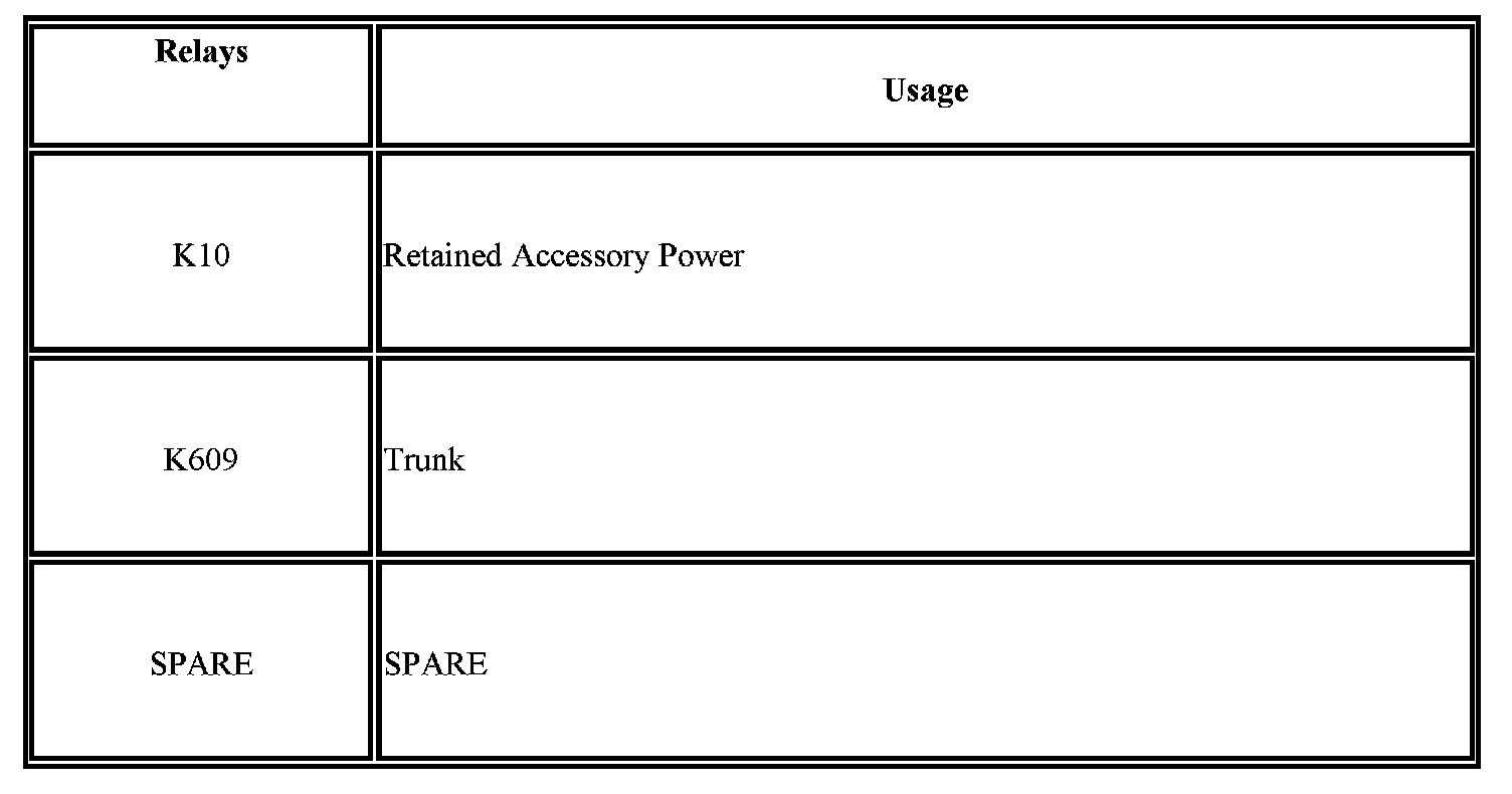 The vehicle may not be equipped with all of the fuses, relays, and features shown.