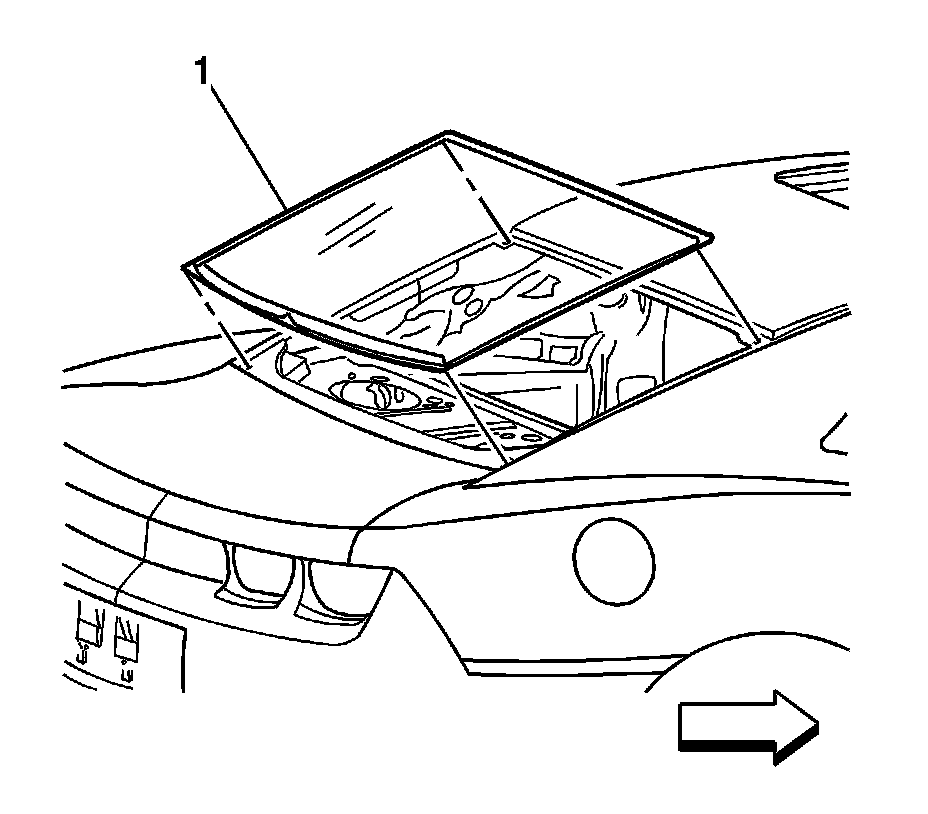 7. With the aid of an assistant lift the rear window (1) from the opening.