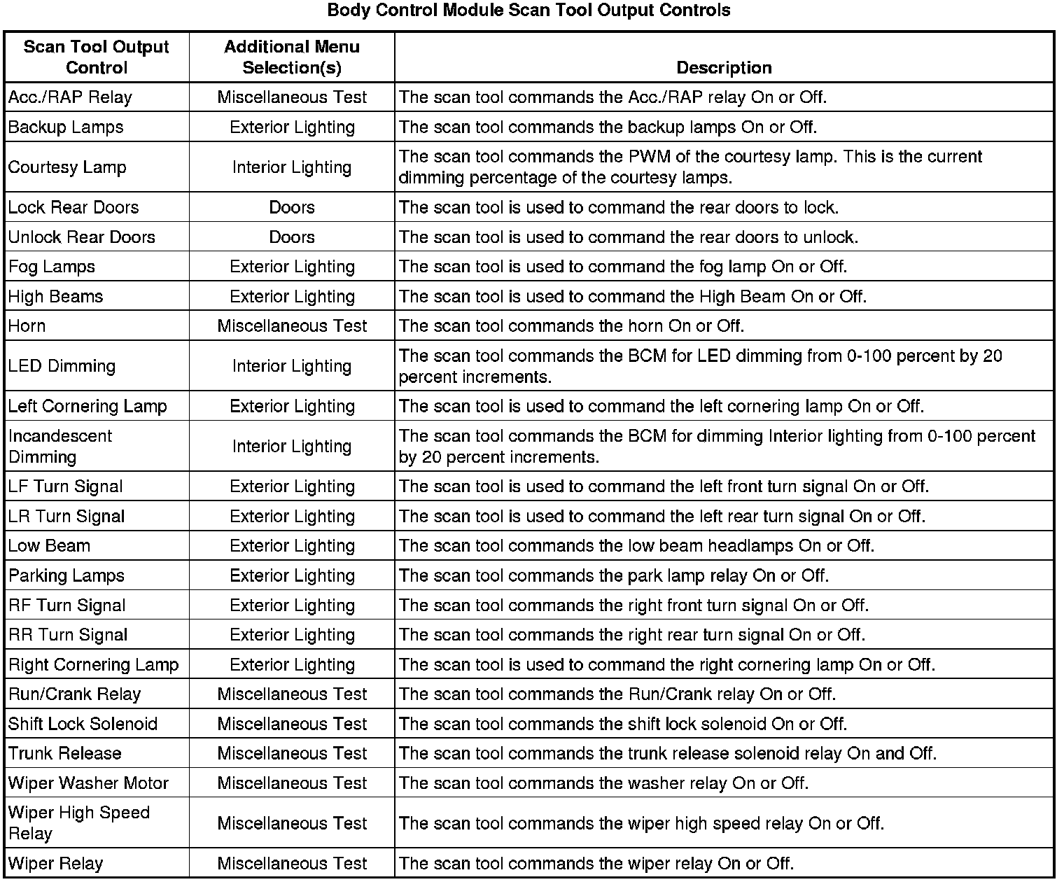 Body Control Module Scan Tool Information