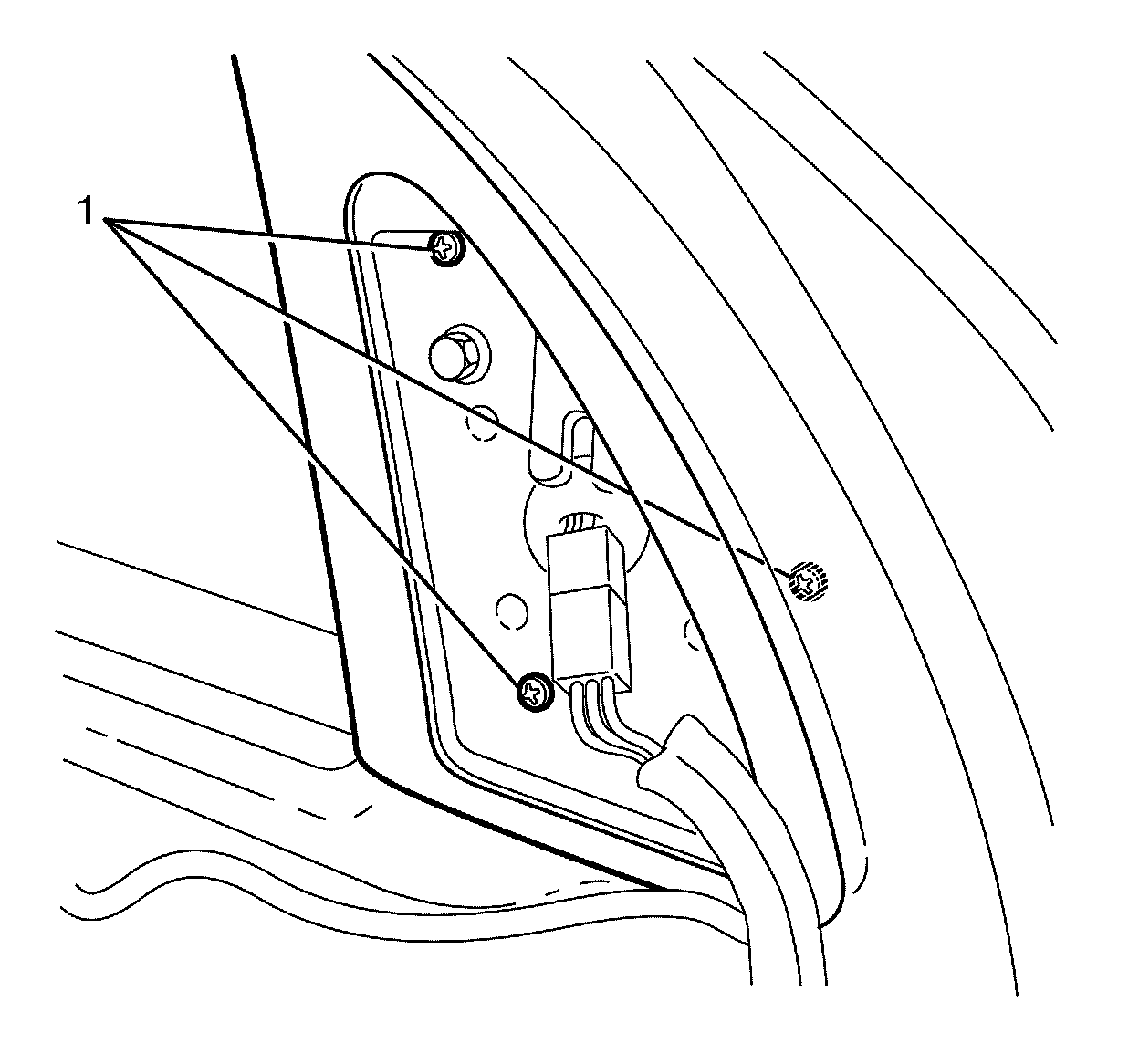 4. Disconnect the mirror to door harness electrical connector (1).
