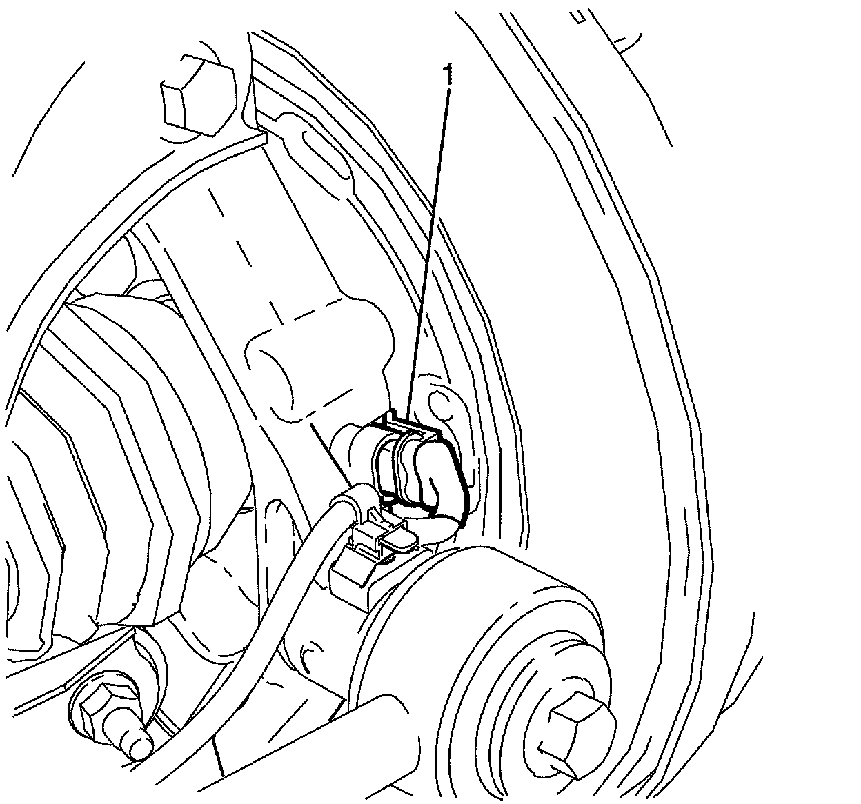 2. Install the wheel speed sensor bolt (1) and tighten to 7 Nm (62 lb in).
