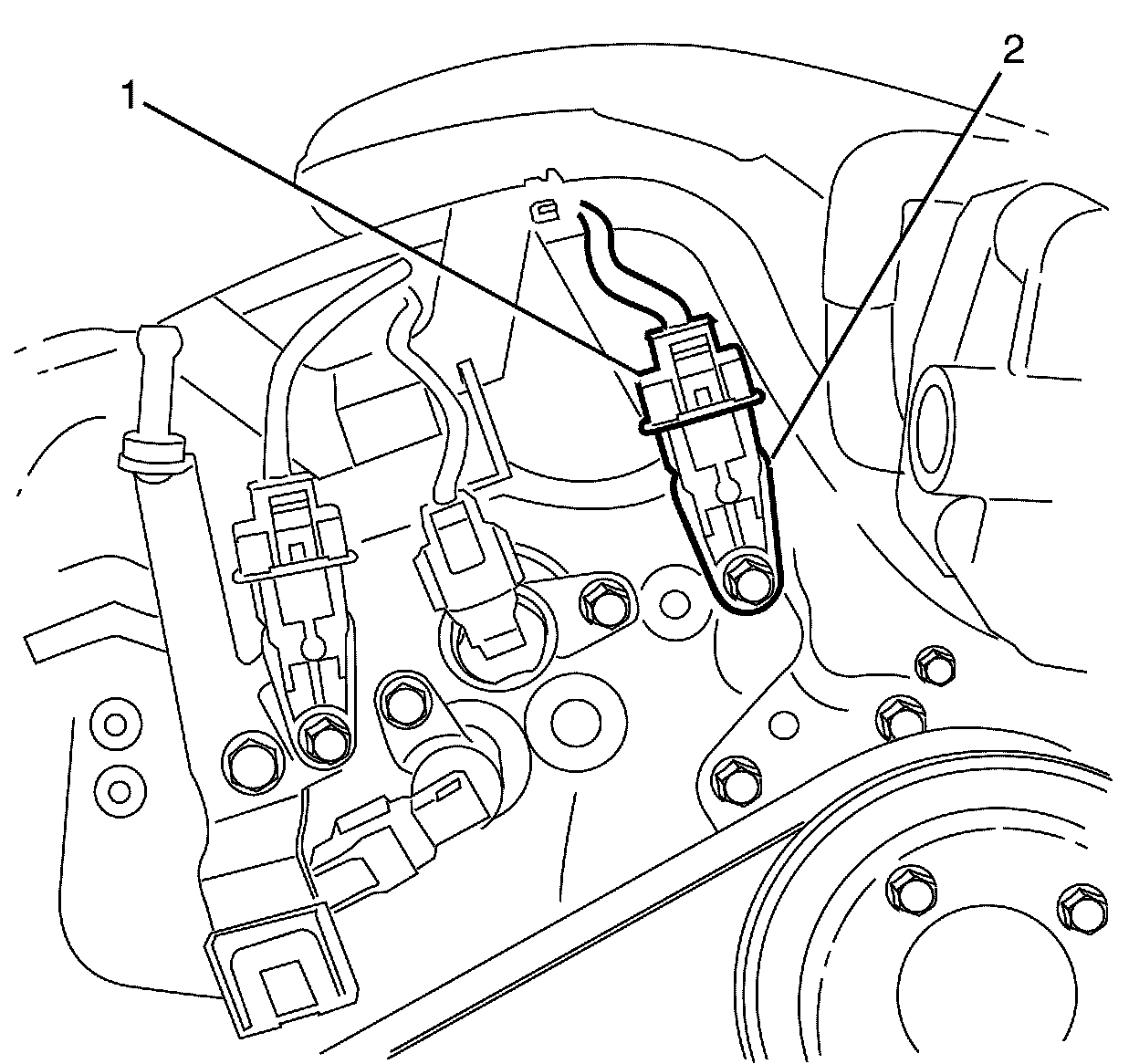 2. Install the CMP sensor to engine front cover retaining bolt (1) and tighten to 10 Nm (89 lb in).