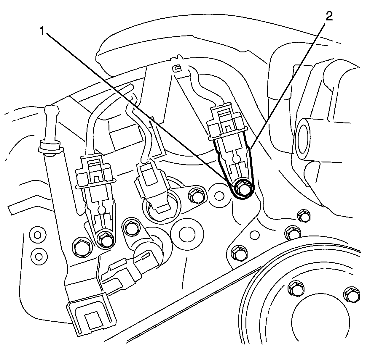 2. Remove the camshaft position (CMP) sensor electrical connector (1) from the CMP sensor (2).