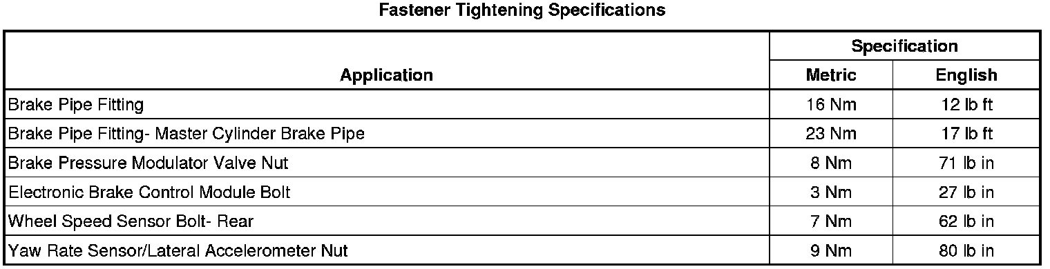 Fastener Tightening Specifications