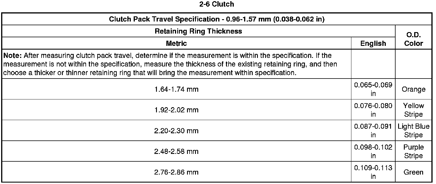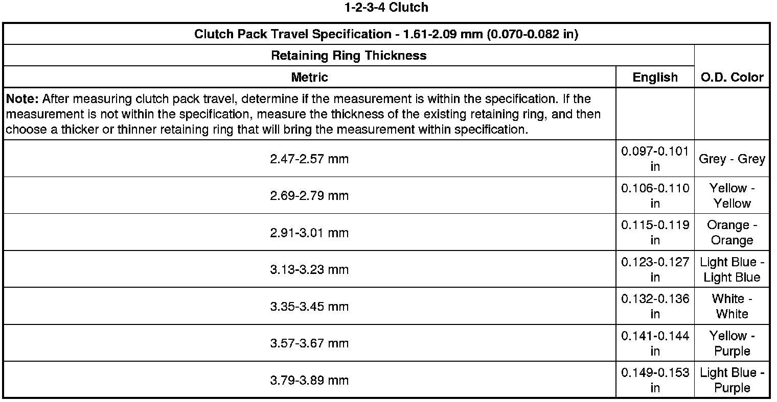 Clutch Backing Plate Retaining Ring Specifications (6L45)
