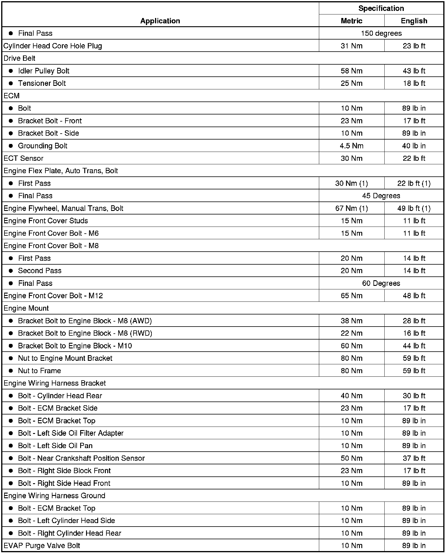 Fastener Tightening Specifications